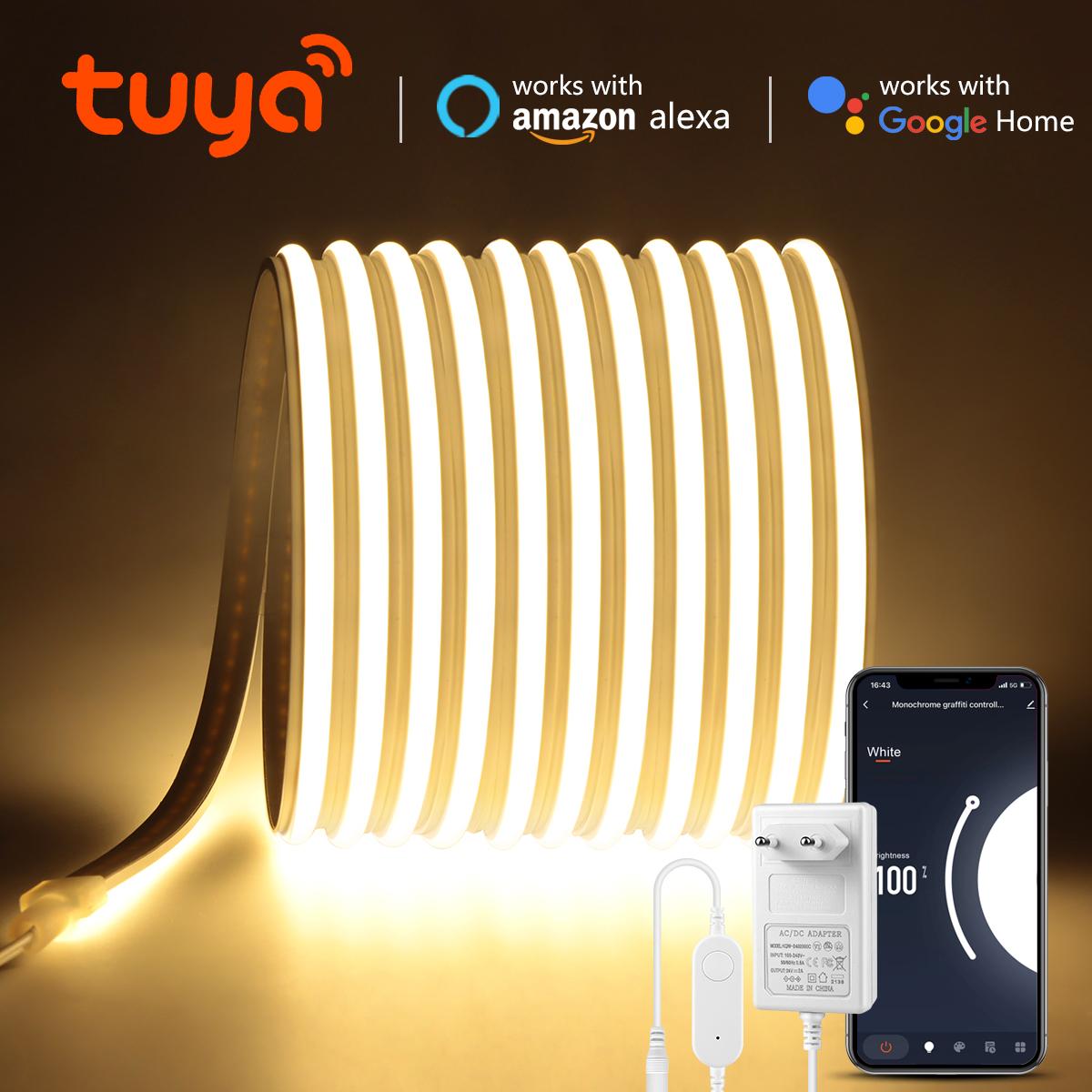 Premium Echt-Silikon Neon LED Lichtstreifen 24V Tuya Smart WiFi APP Alexa Steuerung Selbstklebend COB LED Band-Zuschneidbar Wasserdicht