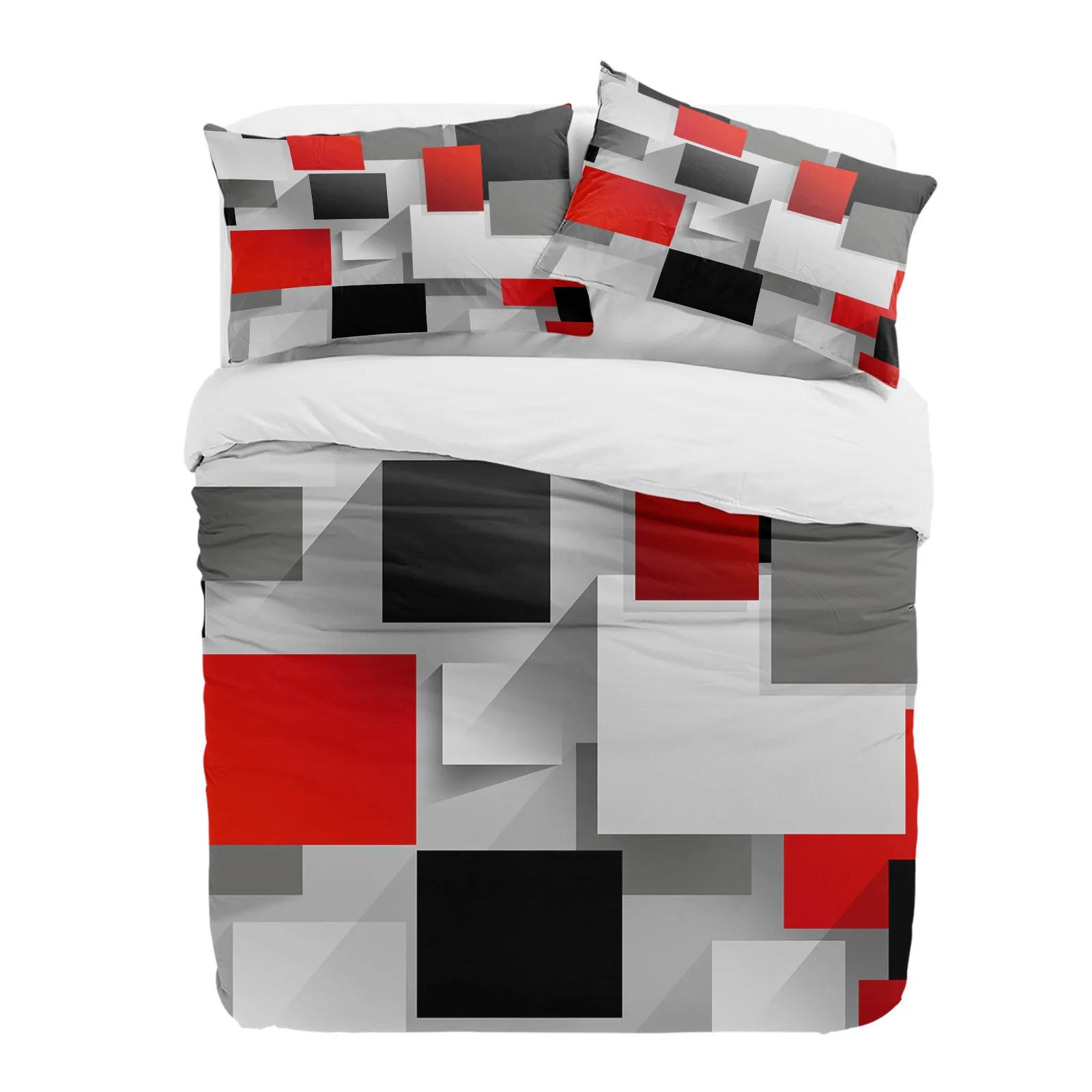 Geometric Red Black Gray Solid Abstract 3pcs Bedding Set For Double Bed Home Textile Duvet Cover Quilt Cover Pillowcase