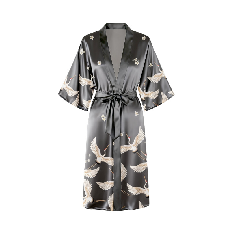 IZURIA mid-sleeved black silk-like bathrobe M
