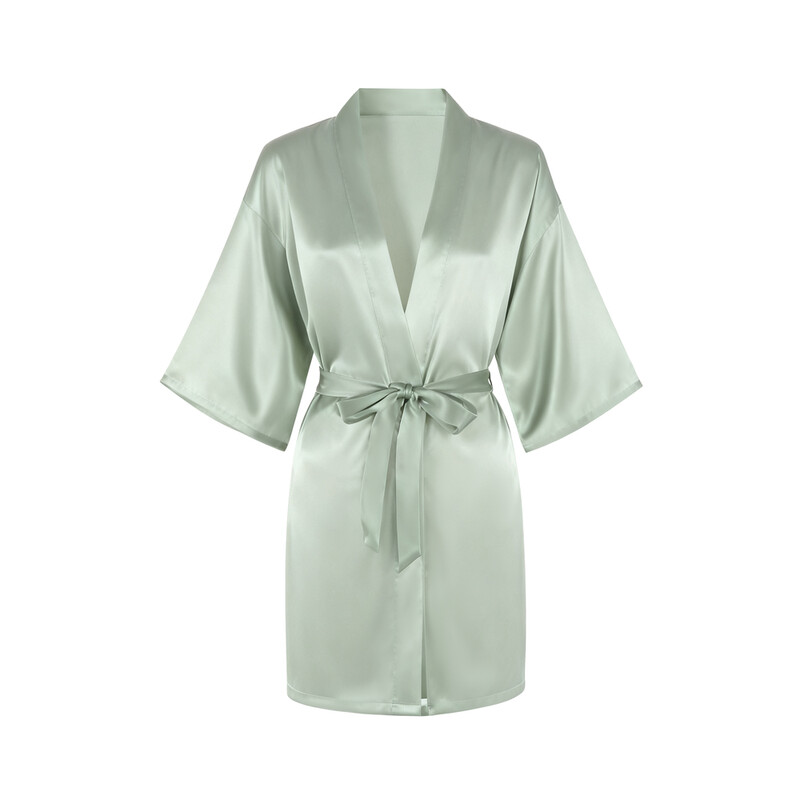 IZURIA mid-sleeved light green silk-like bathrobe XL