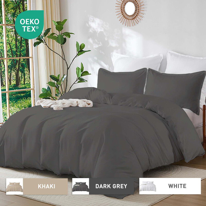 LeBonsoir Dark Gray Bedding Duvet Cover Set,230x220cm/50x75cmx2 Breathable Durable Soft Comfy, with Zip, 3 Pieces, Includes 1 Duvet Cover & 2 Pillowcases,NO Comforter
