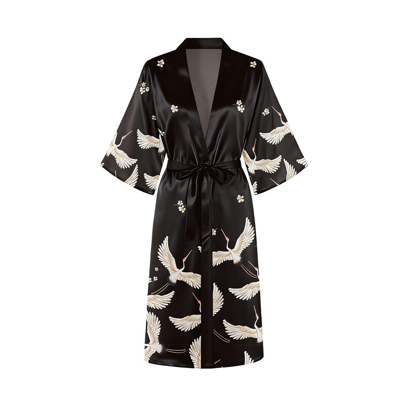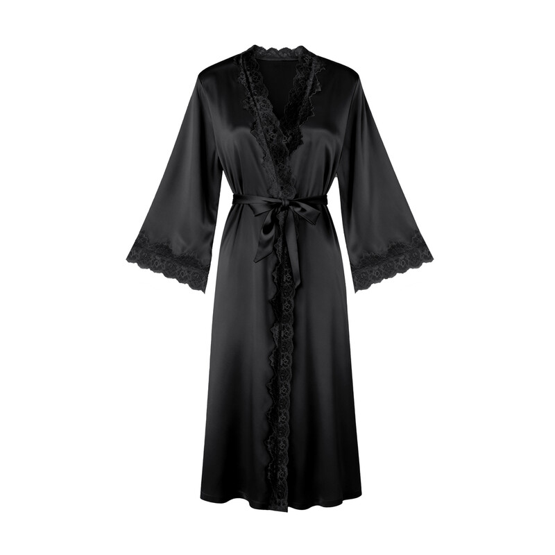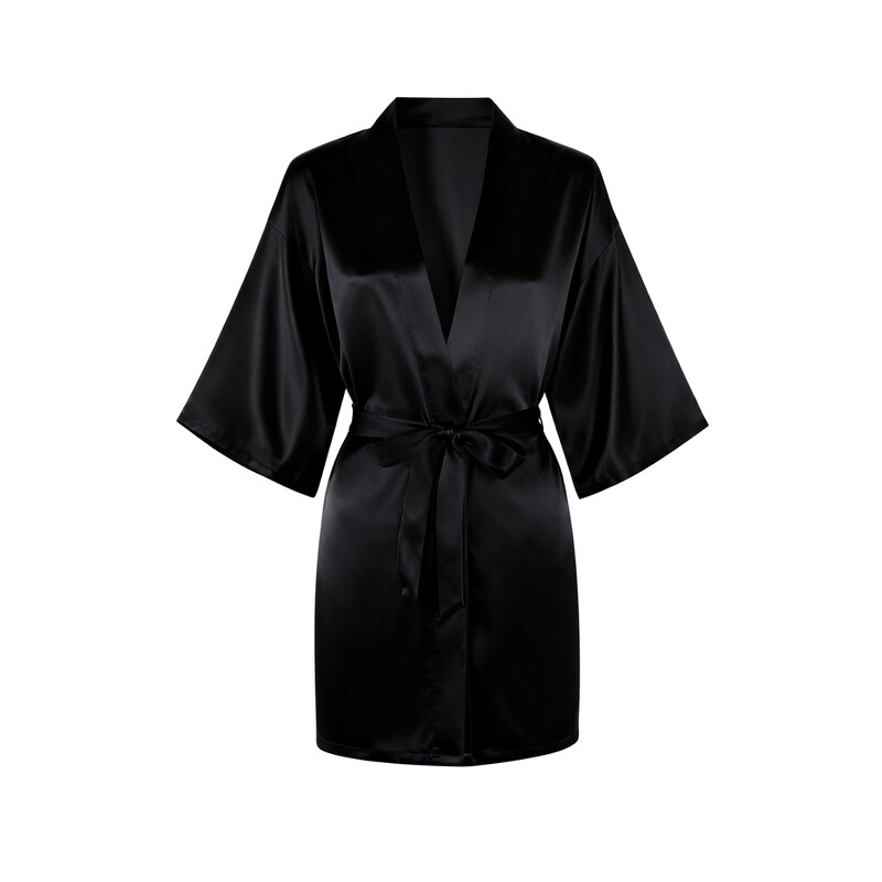 IZURIA mid-sleeved black silk-like bathrobe XL