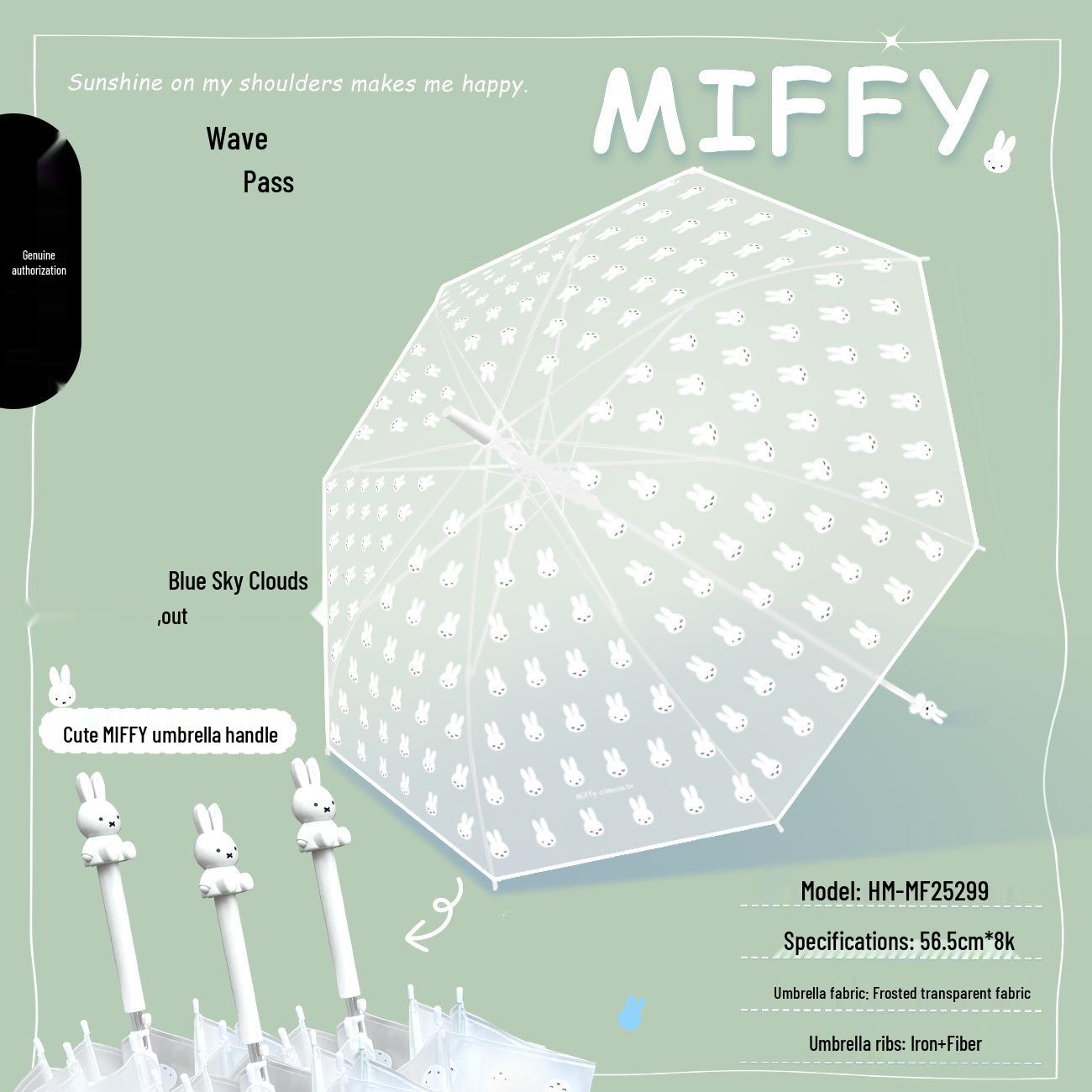 Miffy Umweltfreundlicher Cartoon Langstieliger Transparenter Regenschirm für Kinder