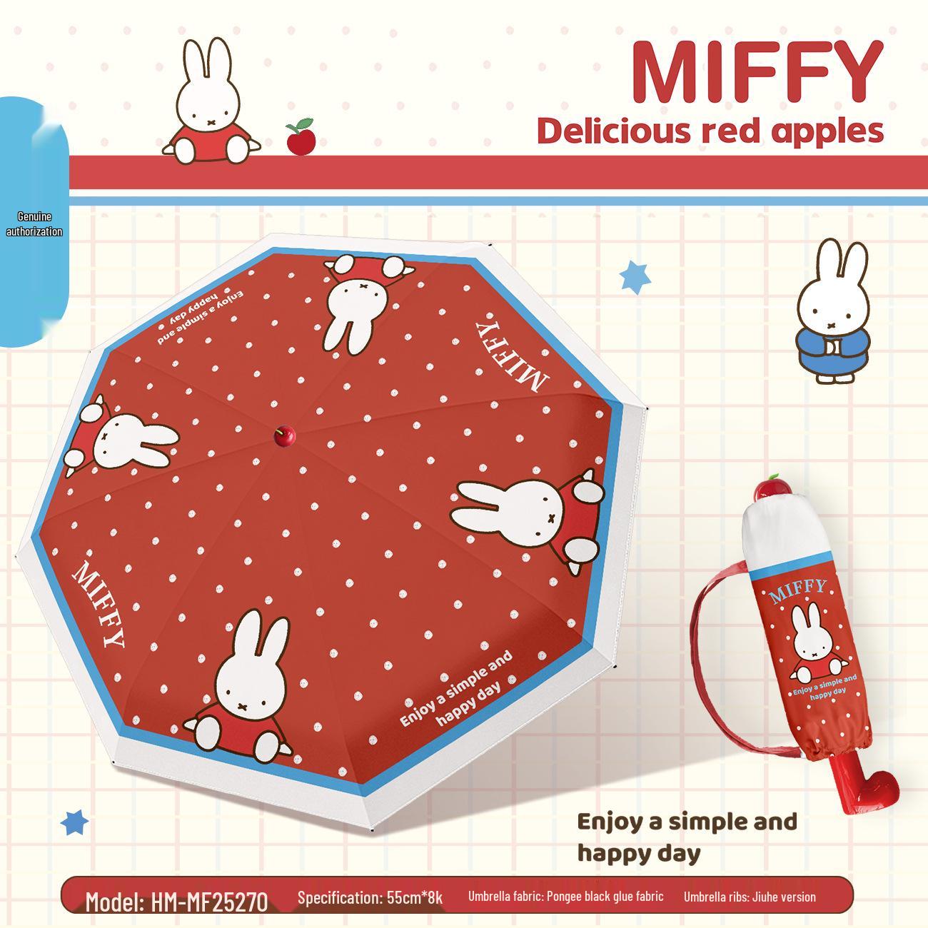 Miffy Black Glue Sunshade & Rain Umbrella, UV Protection, Three-Fold Eight-Bone Design with Red Boots Handle