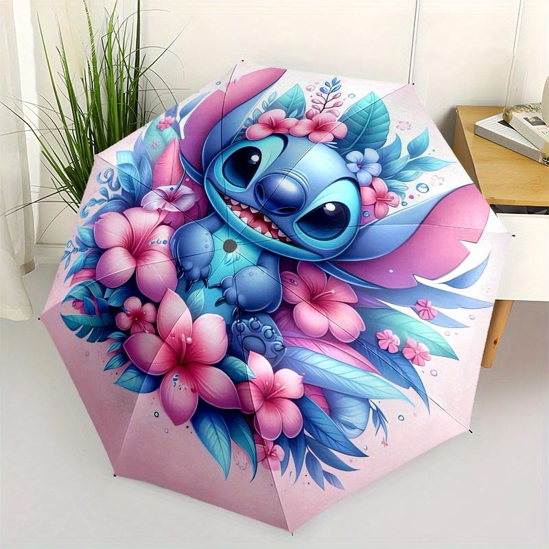 Stitch, Flowers Automatic Opening and Closing Umbrella 8 Ribs Windproof Portable Folding Umbrella, Suitable for Casual and Business Outings,for Gi