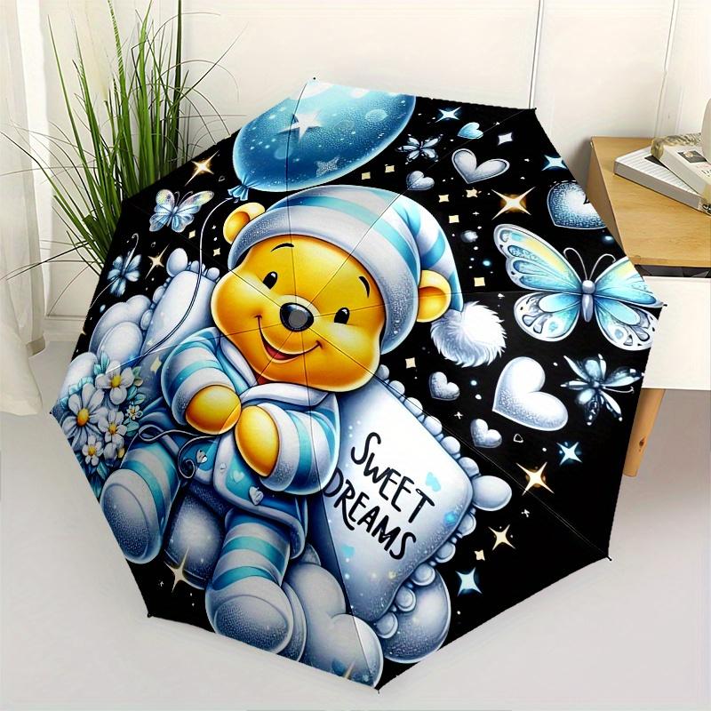 Winnie the Pooh, Firehouse Automatic Opening and Closing Umbrella 8 Ribs Windproof Portable Folding Umbrella, Suitable for Casual and Business Outings