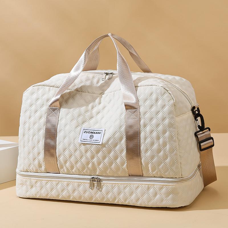 Nylonowa torba podróżna w romby o dużej pojemności, sportowa torba do siłowni, torba tote z niezależną przegrodą na buty, przenośna torba weekendowa,