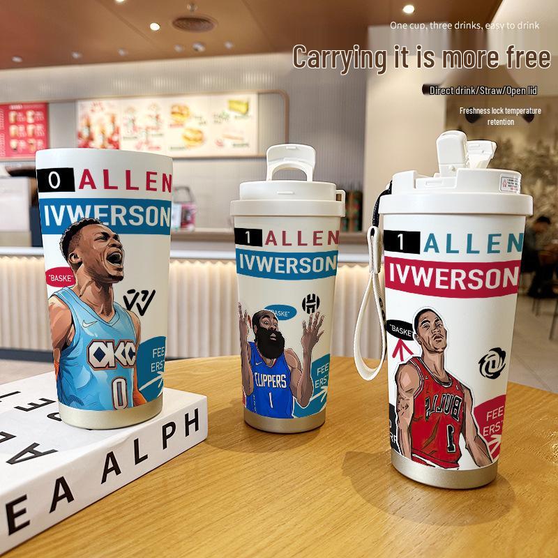 Thermos Basketball Tendance en Acier Inoxydable 316 avec Paille, Grande Capacité, Gobelet d'Eau Sportif Portable - Numéro de Joueur. 24 Design