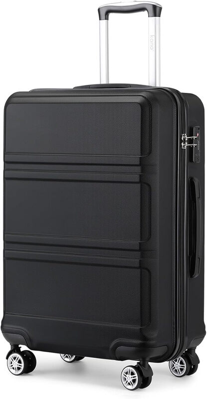 Kono mittelgroßer 24 Zoll leichter ABS-Hartschalenkoffer mit TSA-Kombinationsschloss und 4 360° drehbaren Doppelrädern (Schwarz)