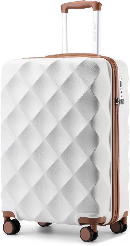 British Traveller Hartschalen-Kabinenkoffer 54 * 36,5 * 21,5 cm Reisekoffer mit Rollen, ABS+PC mit TSA-Schloss, Rollkoffer Creme