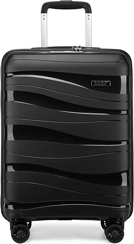 Kono Cabin-Koffer, leichtes Handgepäck aus Polypropylen-Hartschale mit TSA-Schloss und Spinner-Rädern (Schwarz)