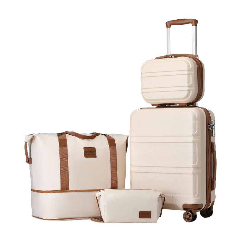 Kono leichtes ABS-Hartschalen-Handgepäck mit TSA-Schloss, Reisekoffer-Set mit Kosmetikkoffer, Duffel-Beutel und Toilettentasche, Beige/Braun, 30 cm + 51 cm