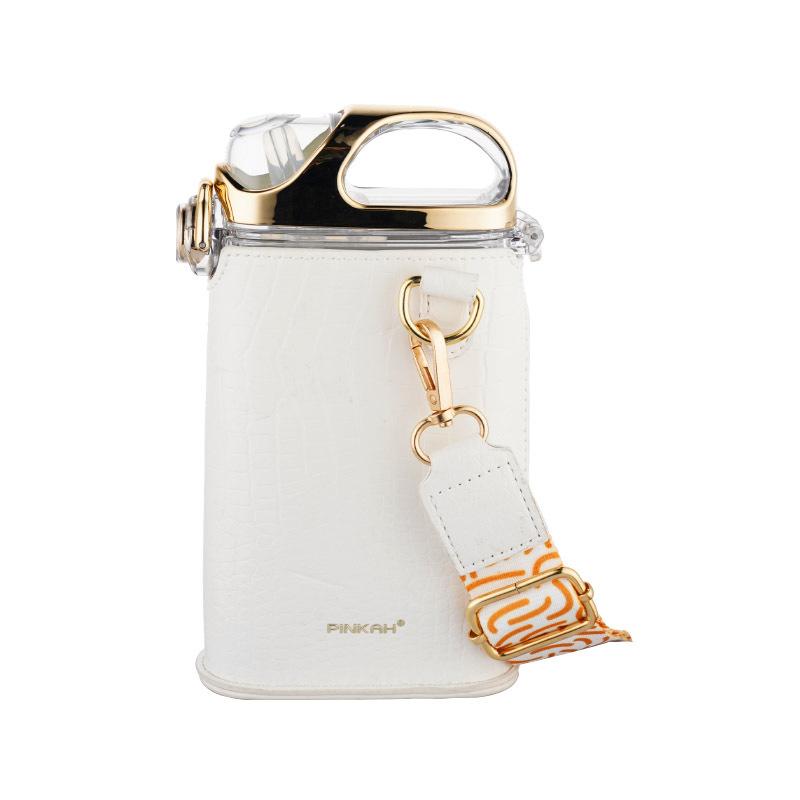 380ML Tritan BPA-Free Square Sports Water Bottle for Girls with PU Leather Cover Straw And Scale - Beautiful Drink Bottle white