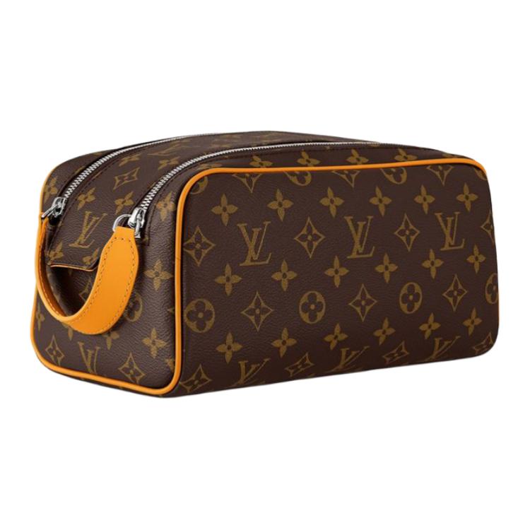 Louis Vuitton kosmetyczka z logo listowym na zamek skórzana kosmetyczka męska żółto-brązowa M12643