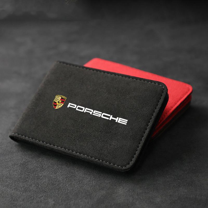 pour Porsche 911 Cayenne Panamera Macan Boxster Carrera-GT 928 Daim Emblème de Voiture Porte-Porte-Cartes de Crédit Permis de Conduire Accessoires mar