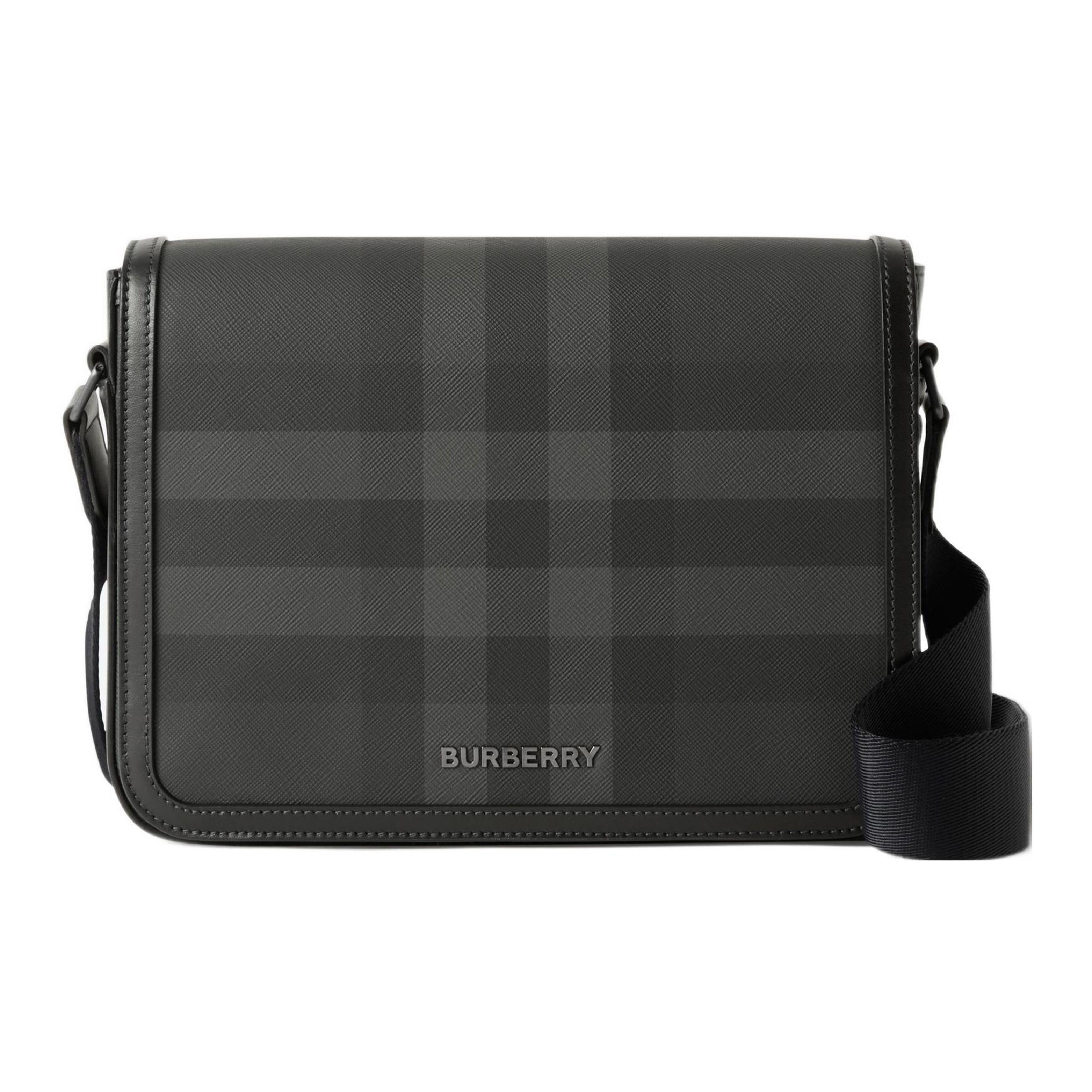Burberry Charcoal Check Messenger Bag, Luxe Grid Print Leer Afwerking Verstelbare Band Schouder Handtas voor Mannen, Dagelijks Gebruik & Zakelijk Gebr