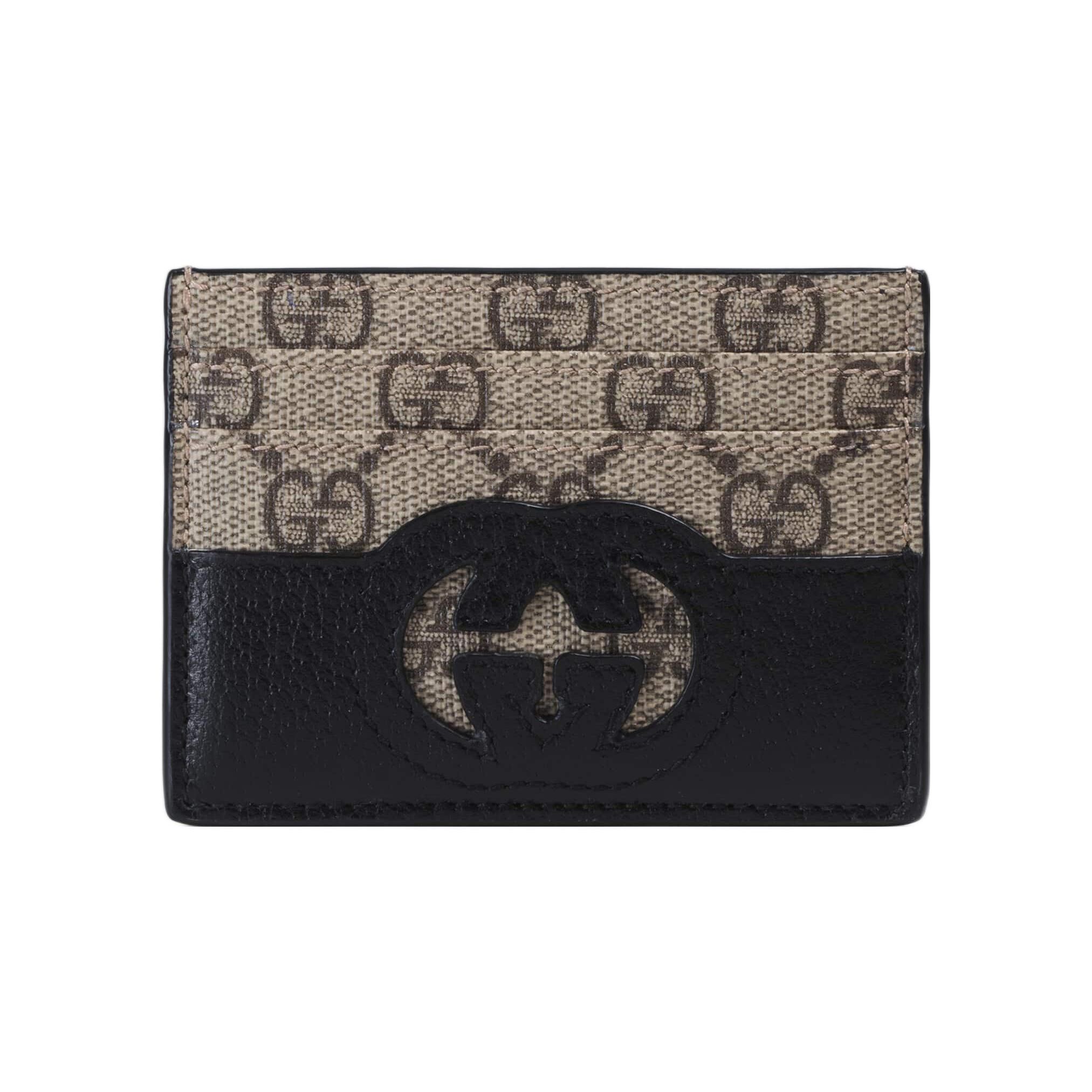 Gucci Double G Serie Dubbele G In elkaar grijpende Canvas En Leer Kaarthouder Heren Accessoires Zwart Ebbenhout 701425-K9GSG-9769
