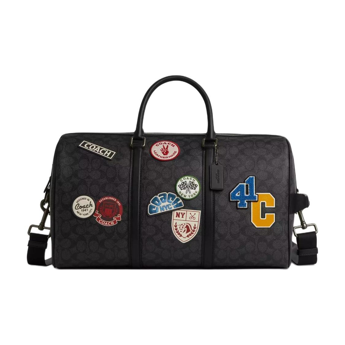 COACH Venturer 45 logo de la marque imprimé fermeture éclair grande taille cuir synthétique sac de voyage homme noir gris noir