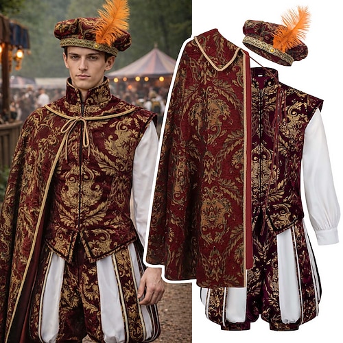 Rococò Vittoriano Rinascimento Mantello Costume di fantasia Nobile Abiti reali Aderente Svasato Costume Per uomo Fantasia Halloween Carnevale Performance LARP Fiera Rinascimentale Adulti Top