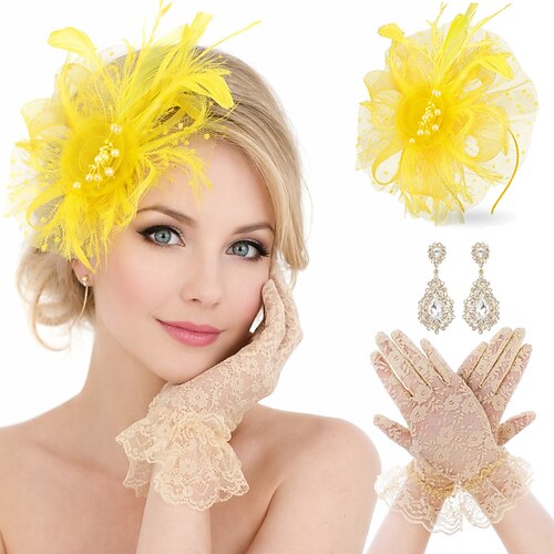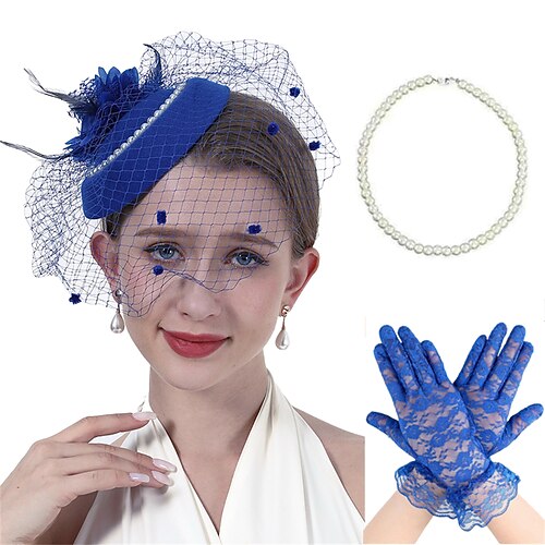 Set Anni 1950 Retrò Vintage Guanti Collana Cappello Fascinator con accessori Gentildonna Costume Per donna Mascherata Ascot Festival delle corse di cavalli Adulti Copricapo Guanti Collana Tutte le