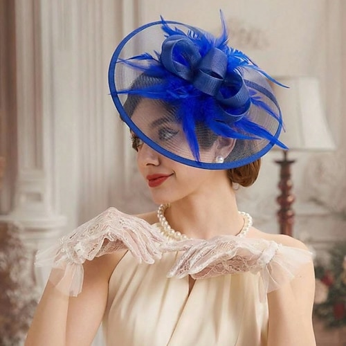 Vintage Anni 1950 Copricapo affascinante Gentildonna Piuma Costume Per donna Mascherata Tè Ascot Festival delle corse di cavalli Adulti Copricapo Tutte le stagioni