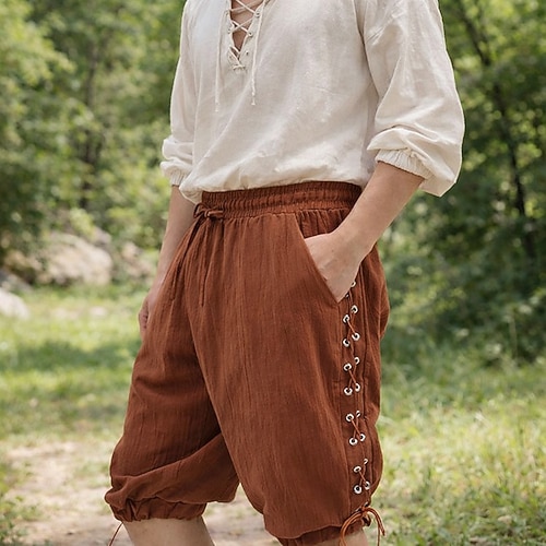 Medievale Rinascimento Pantaloni Pirata Ranger Allacciato Tinta unica Costume Per uomo Costumi da pirata Halloween Carnevale Fiera Rinascimentale LARP Adulti Shorts Tutte le stagioni