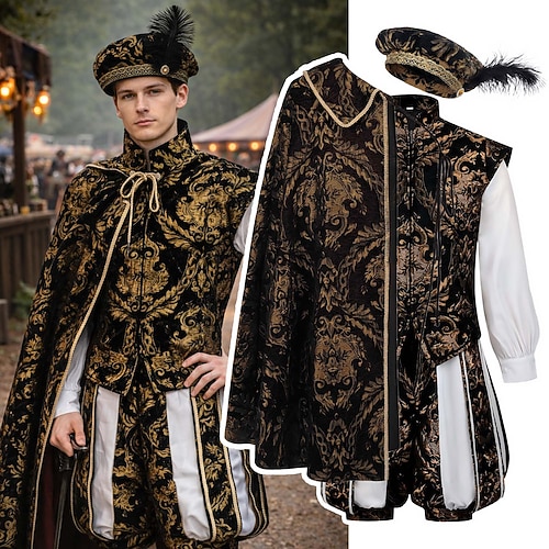 Rococò Vittoriano Rinascimento Mantello Costume di fantasia Nobile Abiti reali Aderente Svasato Costume Per uomo Fantasia Halloween Carnevale Performance LARP Fiera Rinascimentale Adulti Top