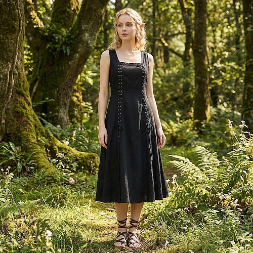 Retrò Vintage Medievale Rinascimento Lunghezza al pavimento Vestito Lunghe Strega Elfo Costume Per donna Halloween Carnevale Mascherata Fiera Rinascimentale Festa a tema retrò Adulti Vestito Tutte le