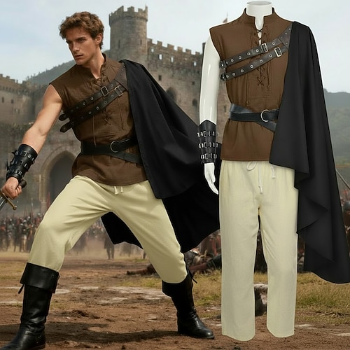 Medievale Rinascimento Costume di fantasia Guerriero Cavaliere Vichingo Costume Per uomo Vichingo Fantasia Halloween Carnevale Performance LARP Fiera Rinascimentale Adulti Camicia Pantaloni Cintura