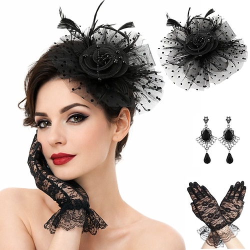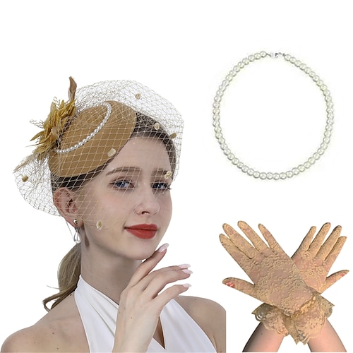Set Anni 1950 Retrò Vintage Guanti Collana Cappello Fascinator con accessori Gentildonna Costume Per donna Mascherata Ascot Festival delle corse di cavalli Adulti Copricapo Guanti Collana Tutte le