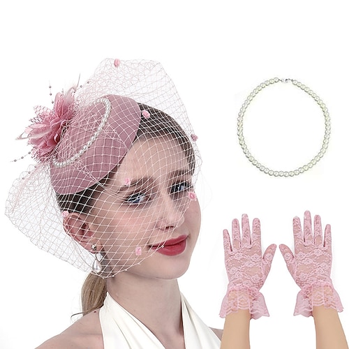 Set Anni 1950 Retrò Vintage Guanti Collana Cappello Fascinator con accessori Gentildonna Costume Per donna Mascherata Ascot Festival delle corse di cavalli Adulti Copricapo Guanti Collana Tutte le