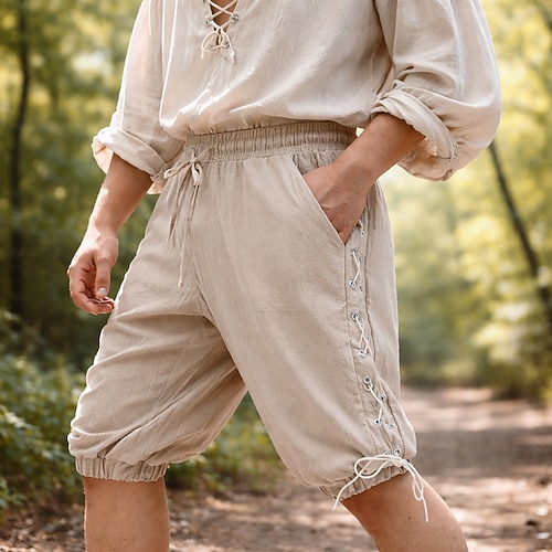 Medievale Rinascimento Pantaloni Pirata Ranger Allacciato Tinta unica Costume Per uomo Costumi da pirata Halloween Carnevale Fiera Rinascimentale LARP Adulti Shorts Tutte le stagioni