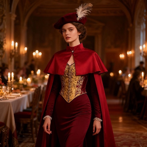 Rococò Medievale Rinascimento Mantello Vampiro Cavaliere Celtico Abiti reali Costume Unisex Fantasia Halloween Carnevale Performance LARP Fiera Rinascimentale Adulti Mantello