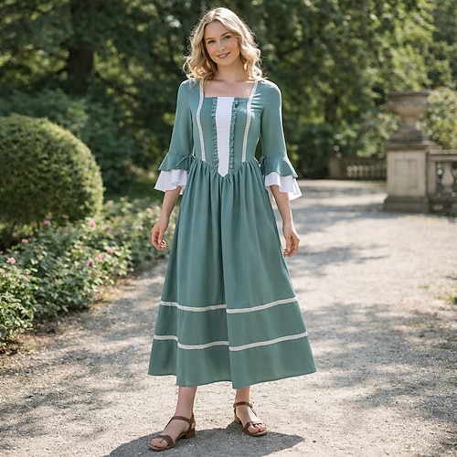 Medievale Rinascimento Lunghezza al pavimento Vestito Lunghe Gentildonna Linea ad A Collo quadrato Costume Per donna Fantasia Halloween Carnevale Fiera Rinascimentale LARP Festa a tema retrò Adulti