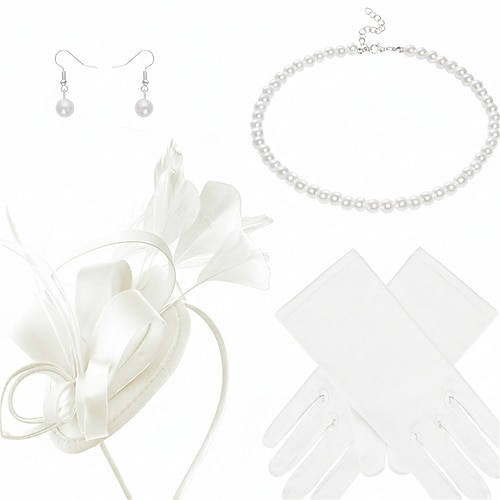 Anni 1950 Retrò Vintage Guanti Collana Cappello Fascinator Gentildonna Costume Per donna Mascherata Feste Ascot Festival delle corse di cavalli Adulti Copricapo Tutte le stagioni