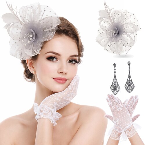 Set Vintage Anni 1950 Guanti affascinante Orecchini Gentildonna Floreale Costume Per donna Mascherata Tè Ascot Festival delle corse di cavalli Adulti Copricapo Guanti Orecchini Tutte le stagioni