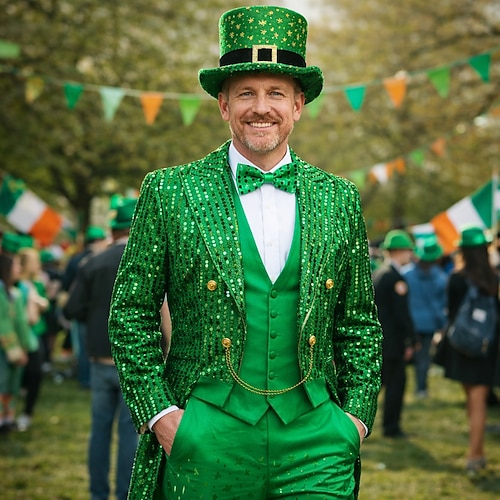 San Patrizio 2026 Gentiluomo Irlandese Testimoni dello Sposo Carnevale Gilet Slim Fit Adulti Per uomo Giorno di San Patrizio Matrimonio Ospite di nozze Festa / Sera Costume di Carnevale facile
