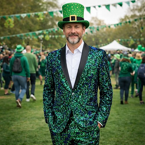 San Patrizio 2026 Retrò Vintage Anni '80 Smoking Completi Blazer Disco Paillettes Costume Per uomo Costume di Carnevale Natale Halloween Carnevale Cocktail party Festa a Tema Parata dell'Orgoglio