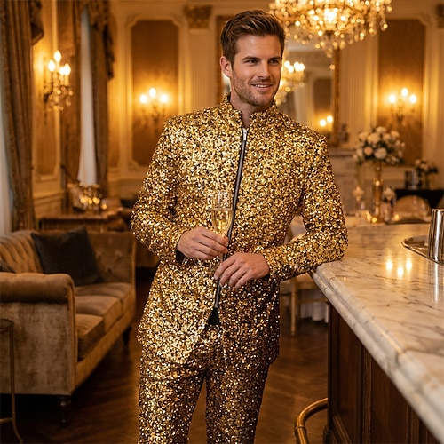 Disco Anni '80 Cappotto Disco Paillettes Costume Per uomo Halloween Mascherata Club Feste Parata dell'Orgoglio Adulti Cappotto Autunno Inverno
