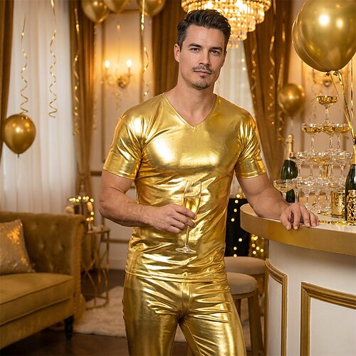 Retrò Vintage Anni '80 T-shirt Disco Vernice in lattice lucido Metallico Costume Per uomo Halloween Carnevale Parata dell'Orgoglio Mese dell'orgoglio Adulti Maglietta Estate