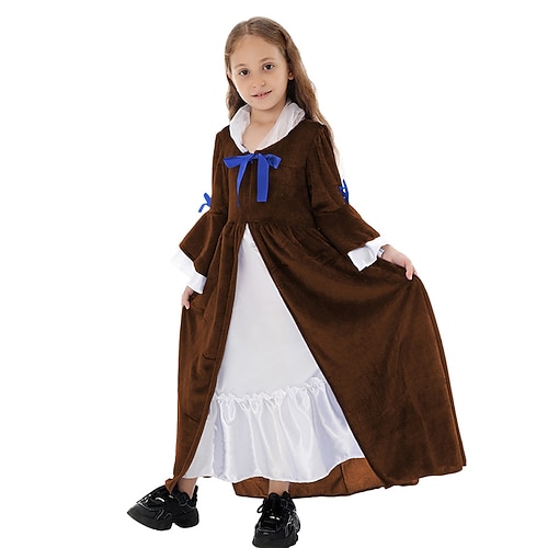 19° secolo anni 1800 Vecchio West Abito da prateria Lunghe Ragazza pioniera Coloniale Pioniere Guerra rivoluzionaria Costume Ragazze Halloween Carnevale Vestiti per eventi scolastici Rievocazione