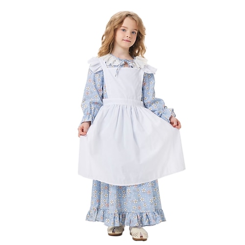 Periodo coloniale 19° secolo anni 1800 Abito da prateria Set cuffia e grembiule Lunghe Ragazza pioniera Coloniale Guerra rivoluzionaria Floreale Costume Ragazze Halloween Carnevale Vestiti per eventi
