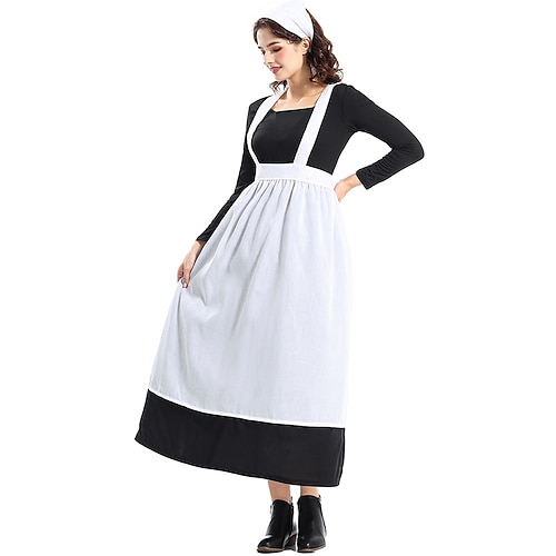 19° secolo anni 1800 Vecchio West Lunghezza alla caviglia Abito da prateria Set cuffia e grembiule Lunghe Ragazza pioniera Coloniale Pioniere Guerra rivoluzionaria Costume Per donna Halloween