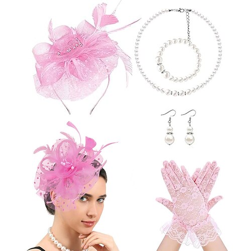 Anni 1950 Retrò Vintage Guanti Collana Cappello Fascinator Gentildonna Costume Per donna Mascherata Ascot Festival delle corse di cavalli Adulti Copricapo Tutte le stagioni