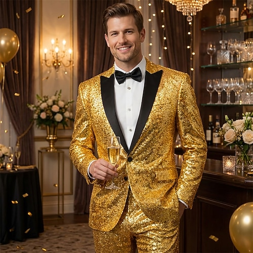Retrò Vintage Anni '80 Metallico Lucido Smoking Completi Blazer Disco Paillettes Slim Fit Costume Per uomo Costume di Carnevale Natale Halloween Carnevale Parata dell'Orgoglio Mese dell'orgoglio