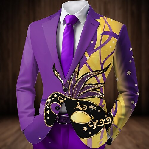 Carnevale Per uomo Maschera Giacca blazer Cappotto Di tendenza Confortevole Traspirante Artistico Casual Abbigliamento da sera Casual Festival Tasca Stampa 3D Bottoni Tutte le stagioni Dentellato