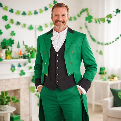 San Patrizio 2026 Irlandese Carnevale Abiti Costume Frac Retrò Vintage Medievale Rinascimento Adulti Per uomo Carnevale martedì grasso Giorno di San Patrizio Feste Mascherata Costume di Carnevale