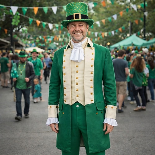 San Patrizio 2026 Leprechaun Irlandese Carnevale Costume di fantasia Frac Medievale Adulti Per uomo Carnevale Giorno di San Patrizio Feste Costume di Carnevale facile Vestirsi