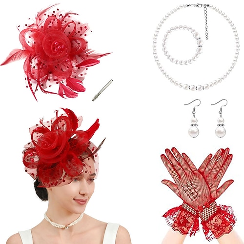 Anni 1950 Retrò Vintage Guanti Collana Cappello Fascinator Gentildonna Costume Per donna Mascherata Ascot Festival delle corse di cavalli Adulti Copricapo Tutte le stagioni