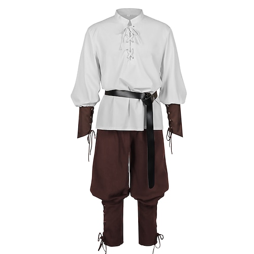 Medievale Rinascimento Costume di fantasia Lunghe Pirata Vichingo Costume Per uomo Vichingo Costumi da pirata Halloween Carnevale Performance LARP Fiera Rinascimentale Adulti Camicia Pantaloni Cintura